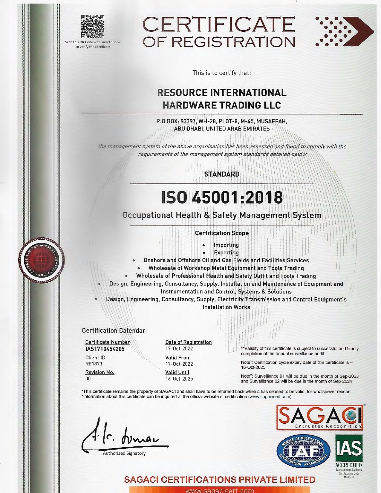 Resource International committed to provide quality products on time to meet customer satisfaction. The management has established, documented, implemented & maintained quality management system and continually improves its effectiveness covering the requirements of ISO 9001: 2015, ISO 14001:2015, and ISO 45001:2018. It also follows AQL 6.5 level for all its goods.